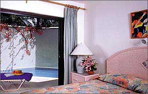 set in 8 acres of tropical gardens, which adjoin a secluded sandy beach